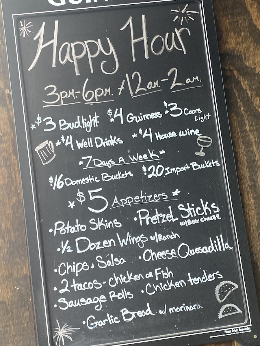 Cod made in house beer batter deep fried with side of steak fries, Cole slaw and tarter sauce.